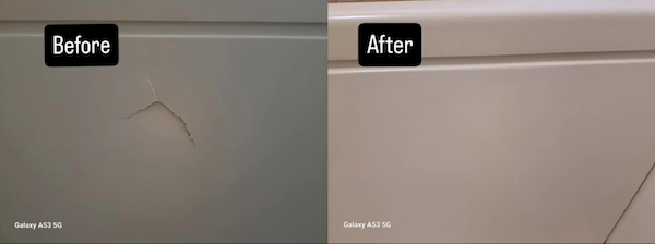 施工後は、亀裂も完全に見えなくなり、新品同様の輝きを取り戻しました。